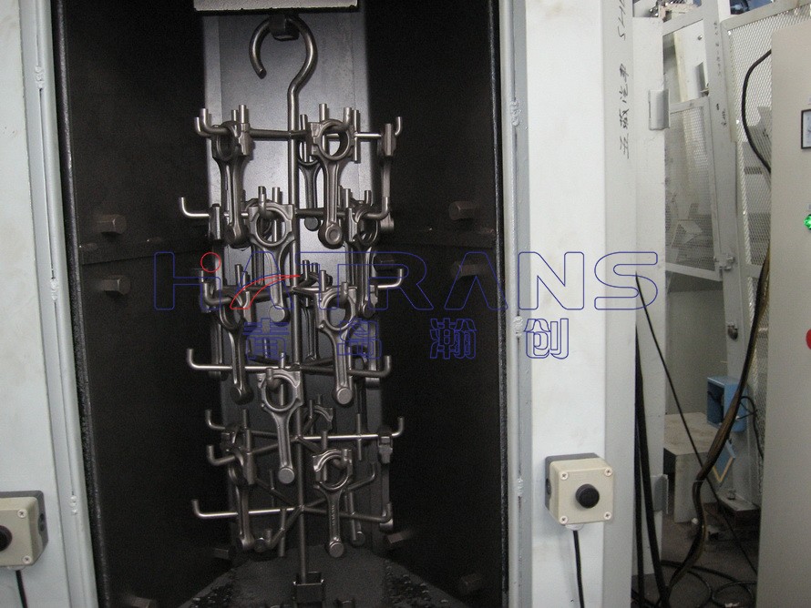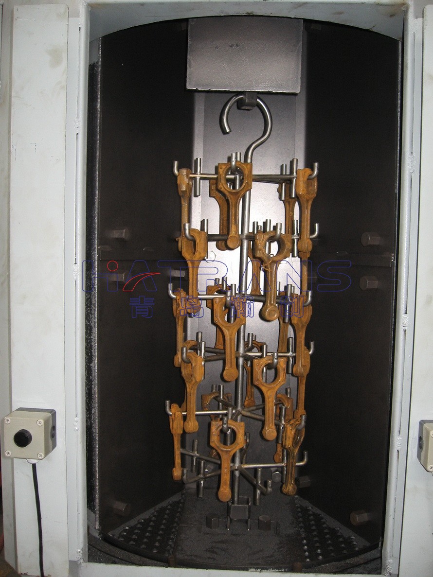雙工位設計,吊鉤公轉(zhuǎn)和自轉(zhuǎn)機構合理搭配運行,既方便更換工件,又確保清理效果的均勻性